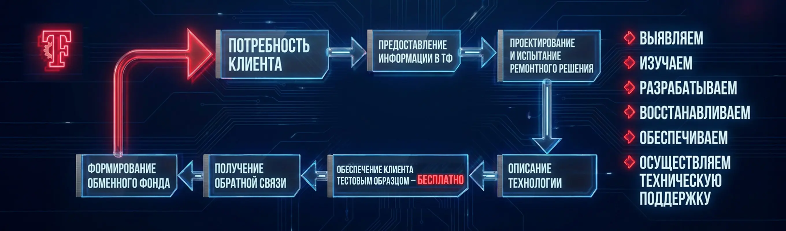 Мы специализируемся на комплексных инженерно-технических решениях для сложных агрегатов и узлов. Наша ключевая особенность — полный цикл: мы не только выполняем профессиональный ремонт, но и сами производим ключевые компоненты на собственном производстве, гарантируя качество выпускаемой продукции.